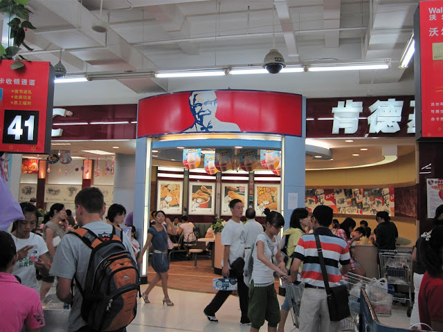I was dropped off in front of the Walmart in Nanjing. And dayumm...we’re talking levels Jerry. It seems that most of the super markets in China (well at least in Nanjing) are multiple floors. And most of the people are shopping with carts, so it’s not really possible to use escalators or stairs. Because of this, most of the floors are connected by inclined speedy walk-ways, like they have in airports, just with a slight incline. And yeah, they have a KFC at the end of the checkout area.
