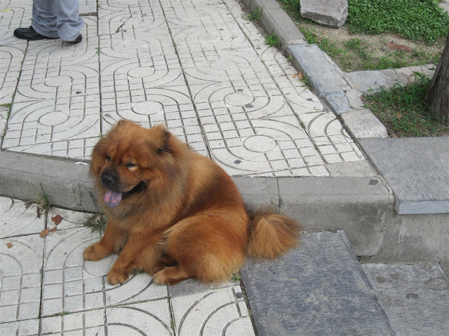 And after a somewhat serious post, with not nearly enough food pictures, I will attempt to leave you on a good note. With a picture of this absurdly cute dog we saw chilling outside of the Jiming Temple. I think it's a chow-mix of sort.