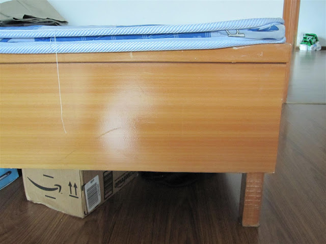 You might be thinking, "Ohhh...what a cute little mattress!" But don't be fooled, it's filled with wood. So I'm essentially sleeping on a piece of wood wrapped in cloth that's sitting atop another piece of wood.