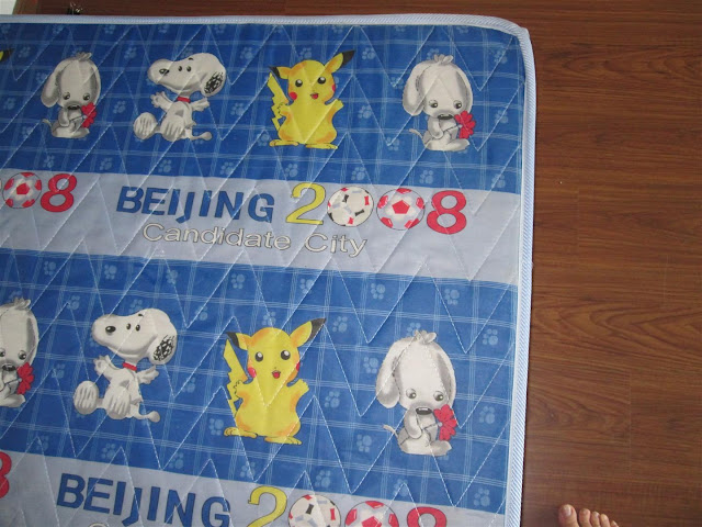 There are many things that the Chinese do very well, copyright infringement being one of them, and so is being prideful of their country. They hadn't even won the 2008 Olympic bid yet...and they were still printing off mattresses to commemorate their becoming a candidate.