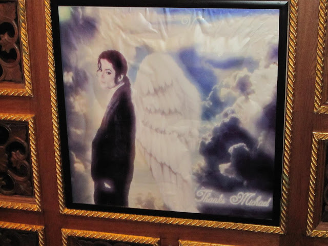 And if the chandeliers and velvet wall hangings didn't completely round out the tacky vibe...this absolutely fabulous Michael-Jackson-angel-in-heaven piece was waiting outside the bathroom door to greet you in your most sensitive of times.